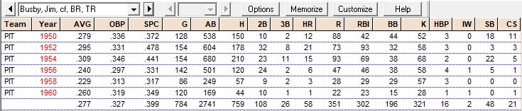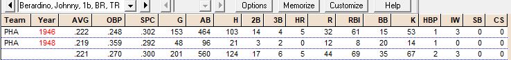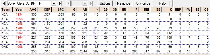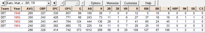 Career Hitting Records “B”